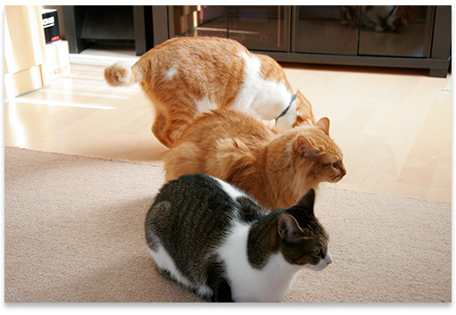 保護してから2年も経過したとは… あっという間です。 保護した当時里親募集のチラシを作ってみたものの結局1件も問い合わせがなかったです。 みんな順調に育ってくれています。 モンチは先日記事に書いたように触って欲しいと催促してきます。 たまは夜パンダくんを膝の上に乗せてTVを見ていると(毎日ほぼ決まった時間にパンダくんを膝に乗せて撫で撫でするのが日課になっている)強引に乗ってきて触って欲しいと催促し、2匹膝の上に乗ってます。 パンダくんは怒ったり嫌がったりしないので助かります。 ただし膝に乗って来るのは夜だけで、なぜか昼間はまったく近寄って来ません… ゴンは相変わらず警戒するけど、モンチたちを撫でていると触って欲しいと距離をおきながらも近くで伏せの体勢をしてアピールします。 保護した当時に比べると警戒心はかなりなくなったけど、まだまだ警戒しています。 たぶんこの先もあまり変わらないと思うので、無理に触ろうとせず気長に接していきます。 PR コメントを投稿する