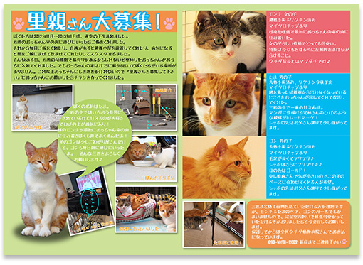 チラシと一緒にモンチ、たま、ゴンそれぞれの写真も渡してこようと思います。