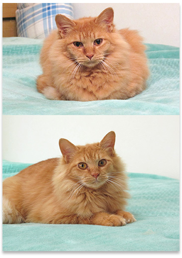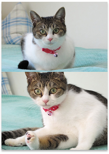 モンチとゴンはベッドの上にいたのを撮影したけど、たまはあまりベッドに乗ってくれなく、モンチたちと同じような条件の写真が撮れませんでした。