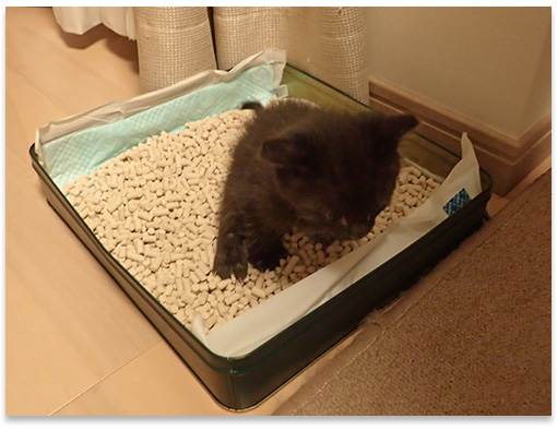 あっという間です。 昨夜箱から出して海男と遊んでいると、隅の方へ移動してカーペットの上でジッとしました。 嫌な予感… 急いで海男を抱え、箱から出しておいたトイレに海男を入れるとそのままオシッコをしました。 自力でオシッコをするのを初めて見ました。 トイレを箱から出しておいたけど自らトイレに入ってくれませんでした。 朝と晩に猫のトイレを掃除するついでに海男のトイレも掃除したら朝晩ともオシッコをしてありました。 自力で排泄できるようになったので、箱から出して自由にさせている時は注意して見ていないとアチコチにオシッコをされそうです。 自力で排泄できるようになったので成長している証ですね。 それと以前は爪は常に出ている状態だったけど、3日くらい前から通常時は爪は隠れているようになりました。 これも成長している証ですね。 猫じゃらしに少し反応するようになってきたので、海男の前でゆっくり猫じゃらしを振って遊んでいると、ベッドで寝ていたなつが猫じゃらしに反応してベッドから下りてじゃれはじめました。 なつは猫じゃらしが大好きです。 そんな遊んでいるなつの姿に海男は反応して、なつの前で欽ちゃん走りのように横走りしていました。 今はとにかく海男と沢山遊んで、今後成長していく過程で人間に対して警戒心がおきないようにしていこうと思います。 順調に成長してくれだいぶ安心できるようになってきたので、海男にお願いして今日から起床を6時とさせてもらいました。 少し長く寝れたので今日は体がラクでした。 オシッコをしている海男。 小さい体で頑張ってオシッコしていて可愛いです。 ・ミルクを飲んだ量(注射器の目盛りから推定) 06:20 12.5ml そこそこ飲んでくれた ミルクの前にオシッコ出る 09:45 10.0ml ミルクの前に離乳食を四口あげる ミルクの前に少しオシッコ出る 14:10 10.0ml ミルクの前に離乳食を四口食べさせる ミルクの前にオシッコ出る 17:40 11.5ml ミルクの前に離乳食を四口食べさせる ミルクの前にオシッコ出る 21:00 10.0ml 3回目から嫌々状態 オシッコあまり出ない 00:10 15.0ml 4回目までは順調に飲んでくれたがそれ以降は流し込み オシッコはまったく出なかった 合計:69.0ml 5gの粉ミルクを20mlのお湯でとかす。 粉ミルクの説明では2gで10mlのお湯でとかすと書いてある。 体重560g PR コメントを投稿する