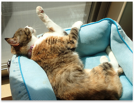 朝一で病院へ電話して夏休みを聞くと明日からと言っていたので休み中でなくて良かったです。 休み前なので激混みだろうと思い、何時頃取りに行けば良いか聞いてみるとお昼前くらいに…と、言っていたので12時前に取りに行って来ました。 ついでにカリカリフードも購入。 対応してくれた看護師さんに茶太郎の様子を聞かれたので元気にしていると伝えると、暑さで体重が減ったりしていないか聞かれました。 茶太郎は最近太ってきて、座っている姿を正面から見るとちーちゃんと似た体形になってきました。 昨年末から今年初めにかけて通院していた時先生から”茶太郎の体型なら5kgくらいは体重があった方が良い”と言われていたので、寝る前に夜食として病院で薦められたカリカリフードをあげていたのが体重増加に繋がったようです。 他の猫たちもみんな夏バテせず元気に暮らしています。 3月に乳腺腫瘍を切除した茶々も元気にしています。 ただもうちょっと太って欲しいです。 茶々は日光浴が好きで、起床後猫の部屋で天気の良い日は毎朝日光浴しています。 暑くないのかいつも不思議に思います。 今の季節猫の部屋は夜になっても室温は30度~32度ほどあります。 消灯の1時間くらい前にエアコンの設定を26度風量を少し強めの設定でエアコンを入れ部屋を冷やし、ケージに猫たちを入れて消灯時に27度で風量を最小にして消灯。 ぼくが寝る前に猫の様子を見に行った時に28度の設定にして起床までエアコンを稼働させています。 最近思い出したけど、昨年も猫の部屋の室温が28度以上の時はエアコンを入れていた事を思い出しました。 冷えすぎても困るので猫の部屋のドアは開けておきます。 今年の夏は今のところ猛暑を示す35度以上になった日はあまりないので助かってます。 夜間猫の部屋はエアコンを入れて寝かせているけど、日中はエアコンを入れていない暑い部屋でみんな寛いでます。 エアコンが効いた涼しいリビングにはクロ太となつくらいしかいません。 みんなエアコンはあまり好きではないようです… それとユキちゃんが5日くらい前からサプリメントのメニにゃんを飲み始めました。 これはまた後日記事に書きます。 日光浴している茶々、暑くないのでしょうか… ・購入金額 4,360円 明細 5%ヒビテンスプレー詰め替え 500円 Dr`s Dietエイジングエイド1.5kg 1,770円 2袋 3,540円 PR コメントを投稿する