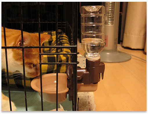 モンチたちの飲み水はペット用の器に入れてケージ内に置いていました。