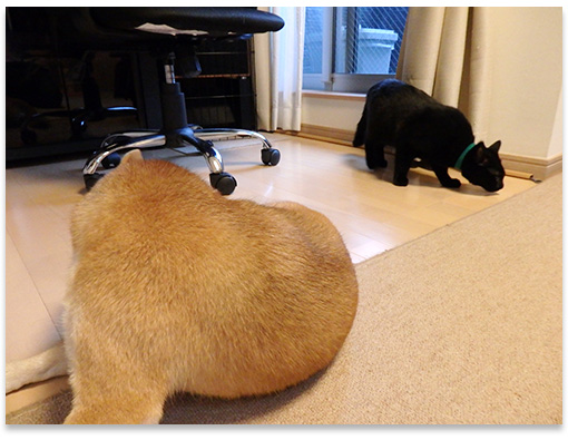 『テレビ見たよー!』 『えらかったね~!カイくん大きくなって良かった!』 と言いながら頭を撫でてもらいました。 みんなから可愛がってもらえると嬉しいですね~! 前回の続きです… 9月30日、海男(カイ)の取材が終わったようで、夜ディレクターの方から取材が終わったと電話がありました。 ただし、海男がディレクターの方をかなり警戒してしまい、欲しい画が撮影できなかったようで、おばあちゃん宅にカメラを渡して、いつも通り過ごしている様子の撮影をお願いしてきたと言ってました。 話しによるとディレクターの方はいつも猫から嫌われるようで、取材へ行くと必ず警戒されると言い、海男のおばあちゃんもこんなカイ(警戒する)は初めてと言われたそうです。 10月1日、朝9時にうちにやって来ました。 なつも警戒すると困るのでなつも一緒に出迎えに連れて行き、訓練士の先生に教わった初対面の人との接し方を実践。 ディレクターの方も警戒されないように目線をなつと同じにするため、雨で濡れている地面に正座して挨拶してくれなつは大丈夫でした。 リビングに入ってもらい、番組の企画書を渡され番組の説明や撮影許可の同意書などにサイン。 ちなみにリビングにいた猫たちは、耳が聞こえないクロ太以外は一斉に2階にある猫の部屋へ逃げて行きました… 海男が警戒しまくりでとにかく困ったと言い、電話で打ち合わせしていた時は、海男を保護して育っていく様子をぼくが撮影した動画や写真を交えて紹介し、再会してもお互いの事は忘れていなかった、めでたし、めでたし… そんな感じで撮影できたらと言っていたけど、欲しい画が撮れなかった場合はどうするのか聞いたら、その時はその時で構成を考え直すと言うので、ヤラセはしないんだと好感が持てました。 おばあちゃん宅に渡したカメラで海男の映像が撮れているのか心配で、午前中のうちにおばあちゃん宅へ行きたいのと、雨が降って天気が悪いので海男を保護した海岸での撮影は中止になりました。 海男が過ごしていた寝室で撮影するため2階へ移動。 最初に定点カメラを設置したいと言われ、ラックの高い位置と床上に置く定点カメラを設置。 放送にもちょこっと映っていた大型の三脚に業務用のカメラ設置したあと、さらにどんな映像でも良いのでごん太さんの目線で撮影して下さいと言われカメラを渡されました。 カメラの設置が終わってインタビューを受けました。 電話での打ち合わせでインタビュー受けてもいいけど顔はボカシを入れてと頼んだけど、なつと海男の話しはとっても感動的な話しなので、ボカシを入れると台無しになると言われ、インタビューの前にディレクターから変装グッズです…と言われ、バッグからゴソゴソと変装グッズを出してくれました… インタビューの間、海男を保護しておばあちゃんの所へ行くまでに撮影した写真と動画を、渡されたUSBメモリーにコピー。 全部で1,600枚以上撮影してあるので、良さそうな写真を取材時までに選んでおこうかと電話での打ち合わせ時に言ったけど、全部下さいと言うのでそのまま全部コピーしました。 放送に使う写真や映像を選別するのに大変だったと思います。 いつも撮影した写真は撮影した日付け事のフォルダに入れて保存してあり、そのままコピーしたところ、ちゃんと日付に沿った内容の写真を使って放送してくれていました。 インタビューが終わり、生き物にサンキューでお馴染みの玄関で出迎えるシーンと家の外観を撮影。 撮影が終わったらディレクターの人は再度おばあちゃん宅へ行くので、これでは昼飯抜きになり可愛そうなので、母ちゃんにコンビニで何か適当に買ってきてもらいちょっと早いけど一緒に昼食。 その時に猫に好かれるにはどうしたら良いのかと真剣に聞かれました… ディレクターを車に乗っけておばあちゃん宅へ送り届け、帰宅してなつの散歩へ。 13時頃おばあちゃんと海男がタクシーに乗ってやって来ました。 なつはおばあちゃんとも初対面なので簡単に初対面の挨拶をしてそのまま全員で二階の寝室へ。 カメラのスタンバイをして撮影開始。 海男が入っているキャリーケースの扉を開ける前からなつは海男がいると思ったようで嬉しそうでした。 しかし扉を開けても海男は出て来ない… しばらくして反対側の扉を開けると出てきました。 でも海男は警戒しているようで表情も少し強張っている感じで、うちにいた時の面影があまりありませんでした。 なつは海男の側へ行こうとしたけど、察したのかすぐぼくの所に来てそのまま横で海男を眺めてました。 海男は少し部屋をウロウロしたけど部屋の隅で固まって動かなくなり、ひたすらなつとの絡み待ちになってしまいました。 海男はとにかく落ち着かない感じで、これでは思ったような映像は無理そうだなぁ…と思っていると、ディレクターが焦りだし、一旦なつと海男の二匹だけにして様子を見る事になり一階のリビングで待機することに… ディレクターは構