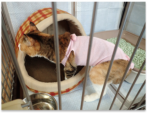 ご飯もよく食べており、切除した傷口の腫れや赤みもそんなにないようで経過良好と言ってくれました。 昨日面会へ行った時に退院後家で化膿止めの薬は無理矢理薬を飲ませるような事はしたくないと伝えておいたので、化膿止めの注射をしてくれて抜糸まで化膿止めの薬は必要ないようです。 抜糸は4月9日辺りになります。 3、4日後に傷口を見せに来て下さいとの事でした。 帰宅後ケースに入れたままリビングへ行くと猫たちがみんな集まって来ました。 一通り挨拶して寝室に設置したケージに入れたけど”出せ~”と騒いで思ったよりも元気そうなのでリビングでみんなと過ごさせました。 その後1階寝室のベッドでずっと寝ていました。 念のため夜間は寝室で過ごしてもらいます。 術後の痛みはあまりないのでしょうか? 茶々の様子を見るとそんな感じを受けます。 ぼくが以前腰椎椎間板ヘルニアで手術をした時は、術後5日間は消灯時に痛みで寝れない事がないようにモルヒネのような痛み止めの注射を打ってもらい寝ていました。 ・診療代 112,330円 明細 再診料 540円 血液検査(生化10項目+電解質)9,240円 エコー検査(腹部精査)5,400円 レントゲン検査(胸部)5,180円 外注検査(病理検査)11,880円 麻酔基本料 9,180円 手術料(片側切除術)41,040円 入院料 猫 2,160円 5日 10,800円 静脈留置 初回 1,620円 入院注射 2週間持続 3,410円 入院注射 皮下 1,620円 2回 3,240円 入院点滴(持続点滴)2,700円 4日 10,800円 PR コメントを投稿する
