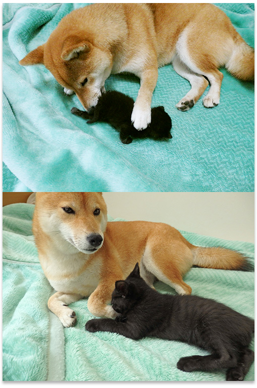 今日もほとんど自力で食べてくれたので、時間もかからず助かりました。 ひどい時は二、三口食べただけで”いらない”の仕草をするので、そのあと残ったご飯を無理矢理口を開けさせて食べさせるためとっても時間がかかります。 起床後にあげるご飯がそんな感じだと、ただでさえ忙しい朝の時間がとんでもない事になります。 朝はなつのトイレ散歩から帰るとなつにミルクをあげて自分の朝食。 その後猫たちを起床させて9個ある猫のトイレの掃除とケージ内を簡単に掃除。 トイレとケージの掃除だけで1時間近くかかるので、海男がご飯を食べるのを渋るとあっという間に時間が経ってしまうので、自力でガツガツ食べてくれるとほんと助かります。 相変わらず海男の噛みつき攻撃に耐えてます。 今日もなつは噛まれて”クゥ~ン、ヒィ~”と鳴いてました。 『痛い時は”痛いよ!”と叱ってもいいよ』と言っても決してやり返したりしなくひたすら耐えてます。 ・ミルク&離乳食を飲んで食べた量(ミルクは注射器の目盛りから推定) 06:15 離乳食:32g ほぼ自力で完食 11:20 離乳食:32g ほぼ自力で完食 16:45 離乳食:40g ほぼ自力で完食 20:30 離乳食:40g ほぼ自力で完食 00:00 ミルク:7.0ml ミルクのみ カリカリご飯を6g置き餌として置く 合計 ミルク:7.0ml 離乳食:144g 体重:1.0kg 昨日脱走しないようにケージの天井部を改良したのに、トイレを掃除しようと寝室へ行くとまたまた海男が出迎えてくれました…